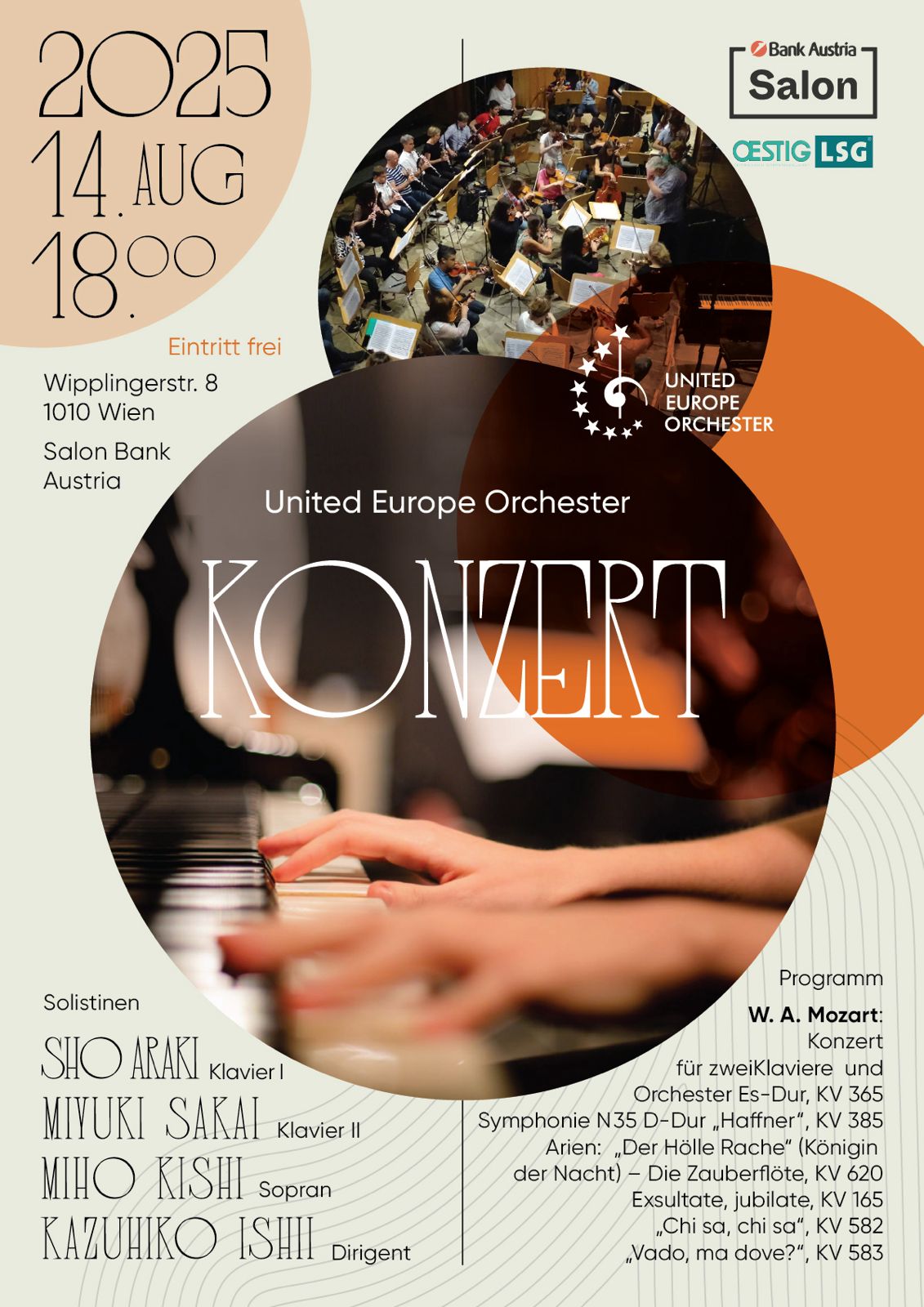 - 14.08.2025 – Konzert mit japanischen Solisten, Leitung: Kazuhiko Ishii, Salon Bank Austria, 1010 Wien